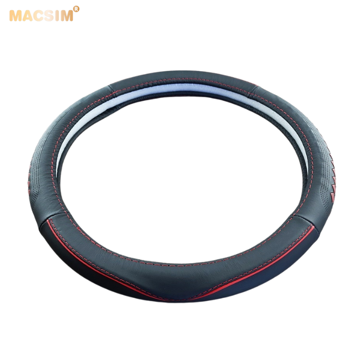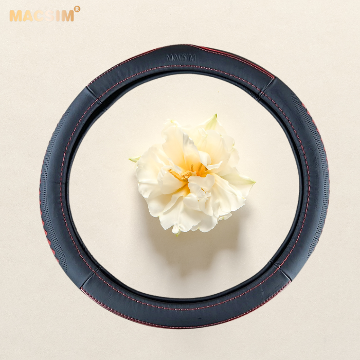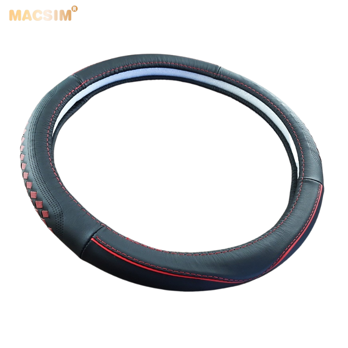 Bọc vô lăng cao cấp Honda màu đen đan đỏ chất liệu da thật 100%, khâu tay thủ công size M phù hợp các loại xe - Nhãn hiệu Macsim mã 8477