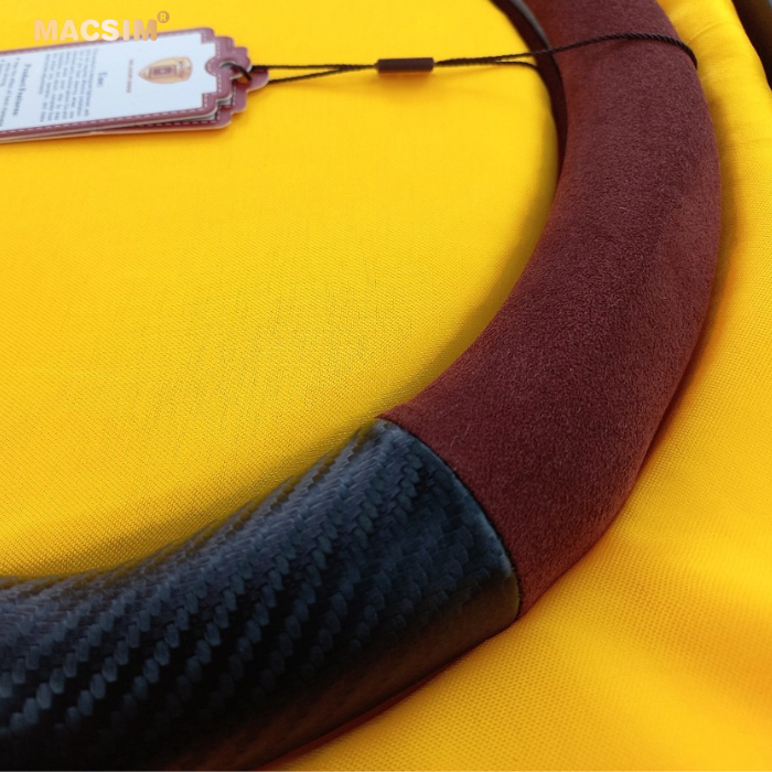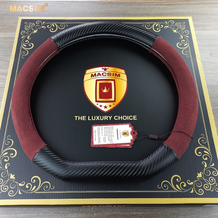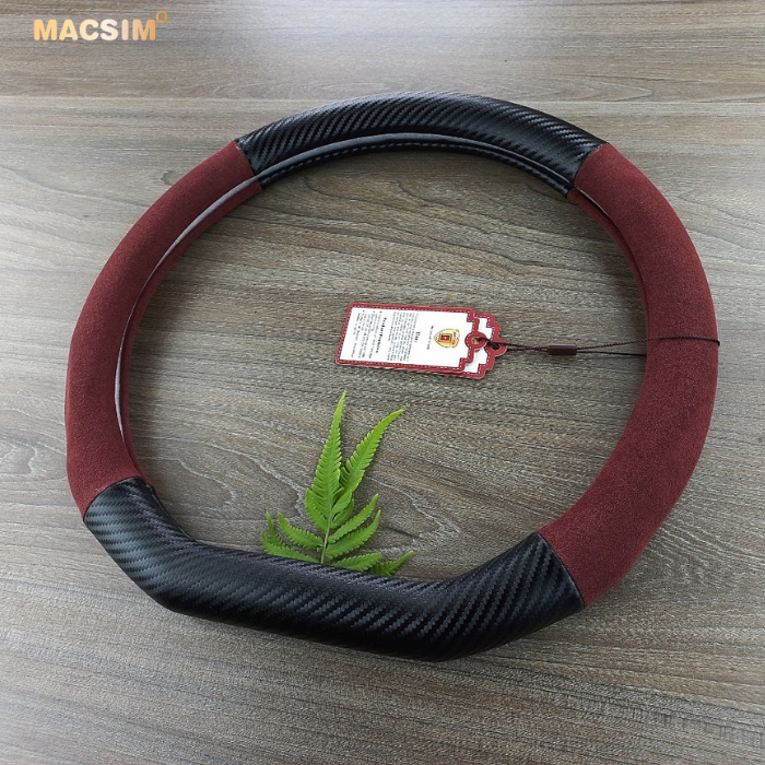 Bọc vô lăng cao cấp Macsim mã 8771 Dcut màu đỏ đô da lộn + cacbon.