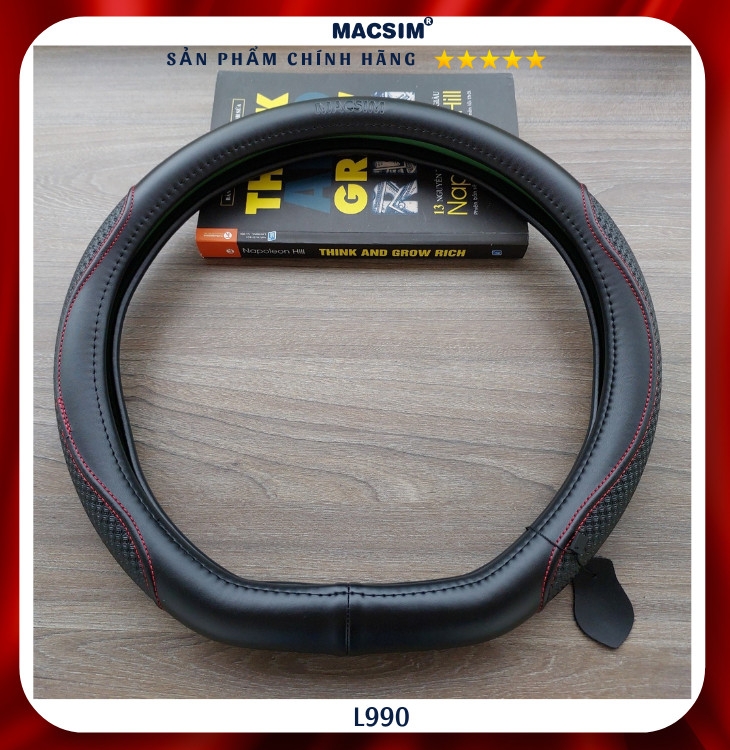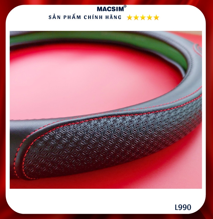 Bọc vô lăng cao cấp Macsim mã Dcut mã L990 màu đen chỉ đỏ chất liệu da thật 100%,- chất liệu da thật 100%, lõi ruột vô lăng được sản xuất từ silicon cao cấp mềm mại dẻo dai không gây hại cho vô lăng nguyên bản theo xe, an toàn cho sức khỏe người sử dụng. Bọc vô lăng Macsim khâu tay thủ công size M phù hợp các loại xe.