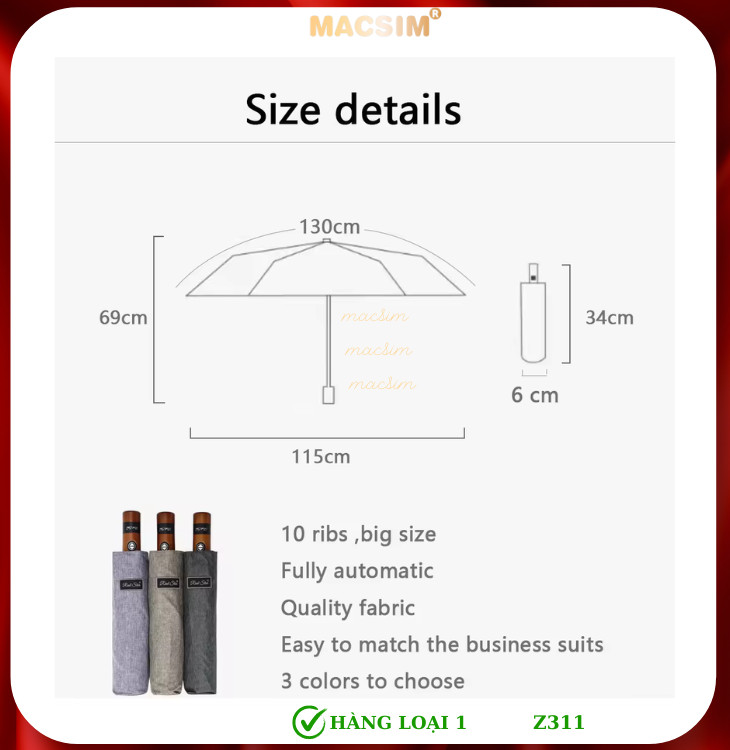 Ô Dù Macsim RST được làm thủ công tỉ mỉ, hoàn thiện từng chi tiết mang đến sản phẩm có độ thẩm mỹ cao. đỉnh cao sang trọng thanh lịch.