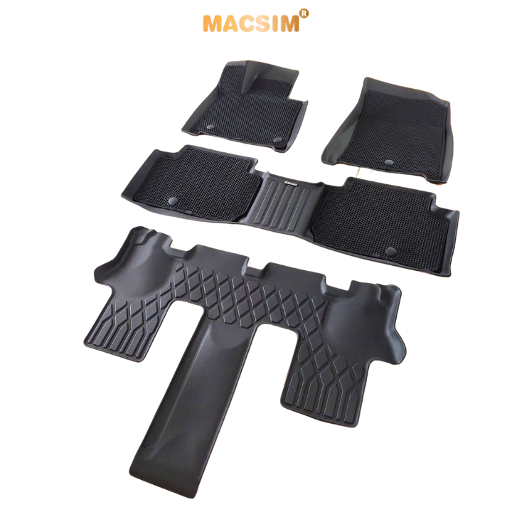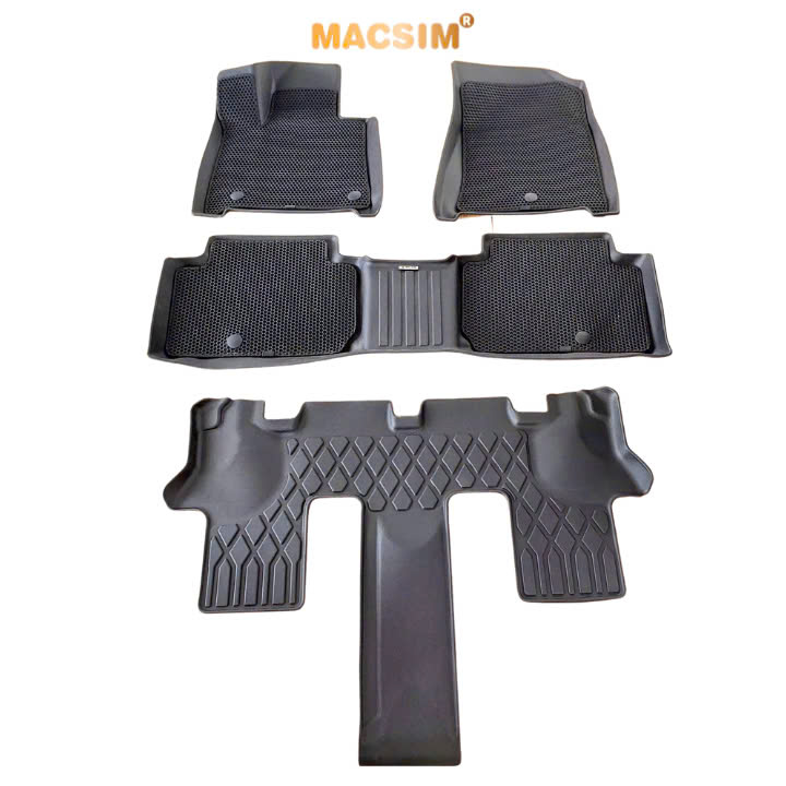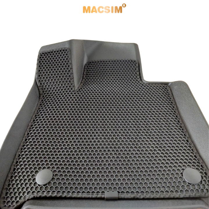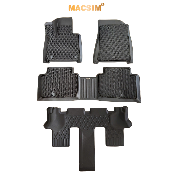 Thảm TPE đúc sẵn theo form sàn, tích hợp gờ cao xung quanh chốt khoá, chống nước và bùn đất lọt xuống sàn nỉ.