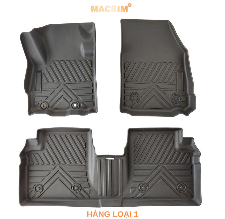 - Thảm Macsim là sản phẩm TPE đúc nguyên khối, có gờ cao và chốt cố định liền khuôn, hỗ trợ ngăn nước, bùn đất và giữ bề mặt sàn xe sạch. Cấu trúc liền mạch giúp việc vệ sinh dễ dàng và duy trì hình dạng lâu dài.