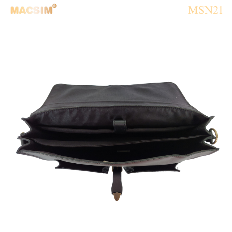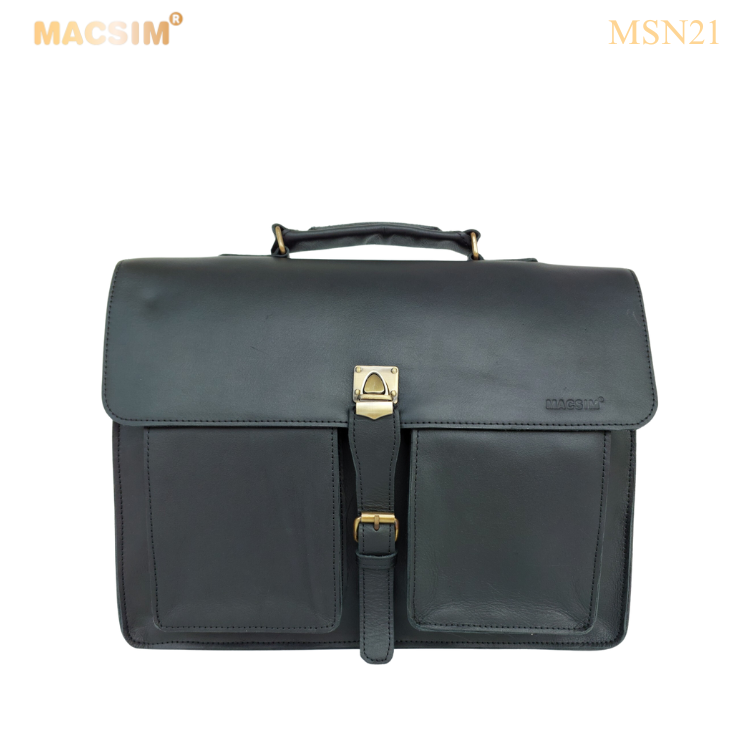 Túi da thật Macsim MSN21 được làm từ da bò nguyên miếng loại 1 – càng dùng càng bóng đẹp. Thiết kế cổ điển sang trọng, nhiều ngăn tiện lợi, có quai xách và dây đeo chéo chắc chắn. Phù hợp đi làm, công tác, du lịch. Sản xuất thủ công tỉ mỉ, khóa kéo YKK, phụ kiện kim loại. Kích thước: 40.6 x 30.5 x 12.7 cm.