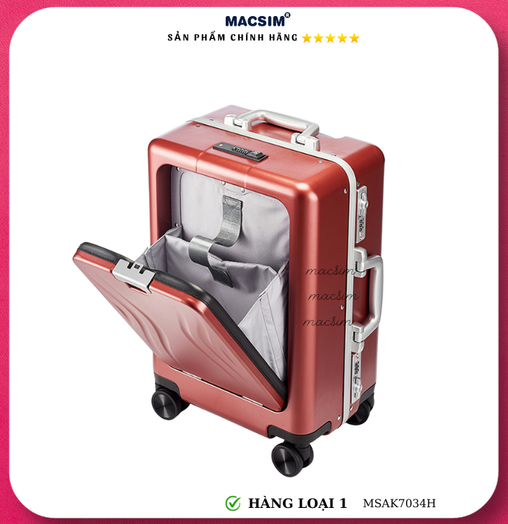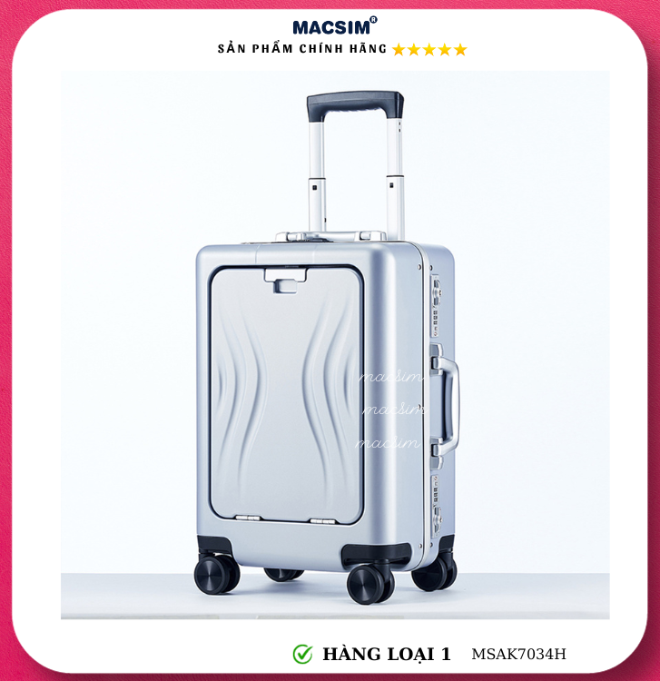Vali Macsim được làm từ chất liệu nhựa nguyên chất PC. Tấm lót bên trong Poliester 150D xuất xứ Trung Quốc được REACH kiểm nghiệm và phê duyệt, bánh xe 360 độ hãng Hinomata của Nhật ; Khóa kéo thương hiệu SBS xuất xứ Trung Quốc, Khóa TSA hãng Master Lock của Mỹ. Thiết kế vali đơn giản lịch lãm vô cùng sang trọng, bền bỉ, tạo dấu ấn phong cách thời trang cá nhân của bạn trên mọi cuộc hành trình. Vali cao cấp Macssim thích hợp với những người thường xuyên di chuyển cần chiếc vali nhẹ, có độ bền tốt.