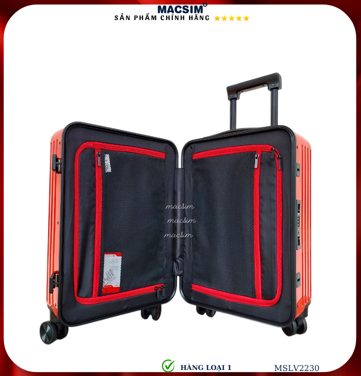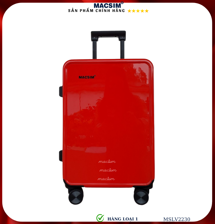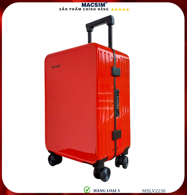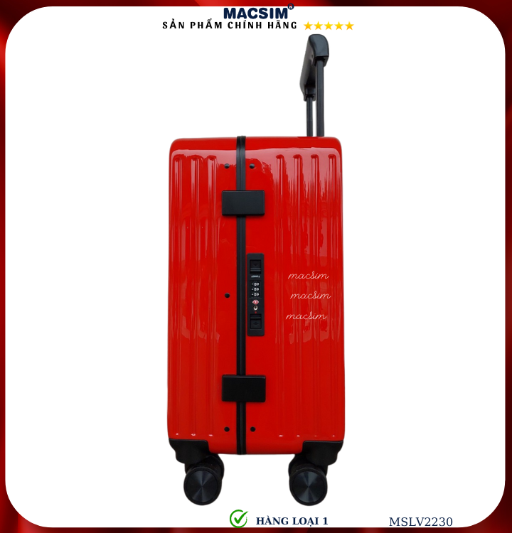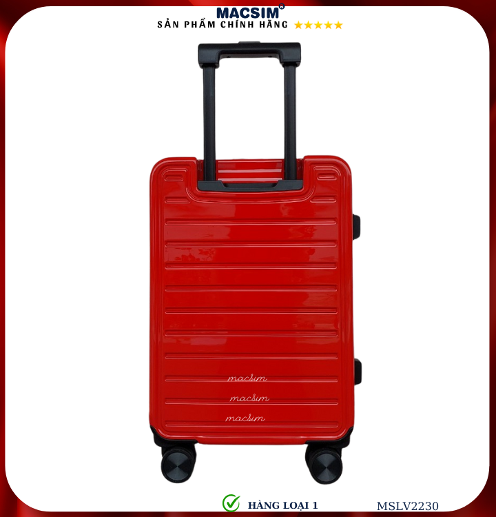 Vali Macsim được làm từ chất liệu nhựa nguyên chất PC. Tấm lót bên trong Poliester 150D xuất xứ Trung Quốc được REACH kiểm nghiệm và phê duyệt, bánh xe 360 độ hãng SJ CỦA Mỹ ; Khóa kéo thương hiệu SBS xuất xứ Trung Quốc, Khóa TSA hãng Master Lock của Mỹ. Thiết kế vali đơn giản lịch lãm vô cùng sang trọng, bền bỉ, tạo dấu ấn phong cách thời trang cá nhân của bạn trên mọi cuộc hành trình. Vali cao cấp Macsim thích hợp với những người thường xuyên di chuyển cần chiếc vali nhẹ, có độ bền tốt.