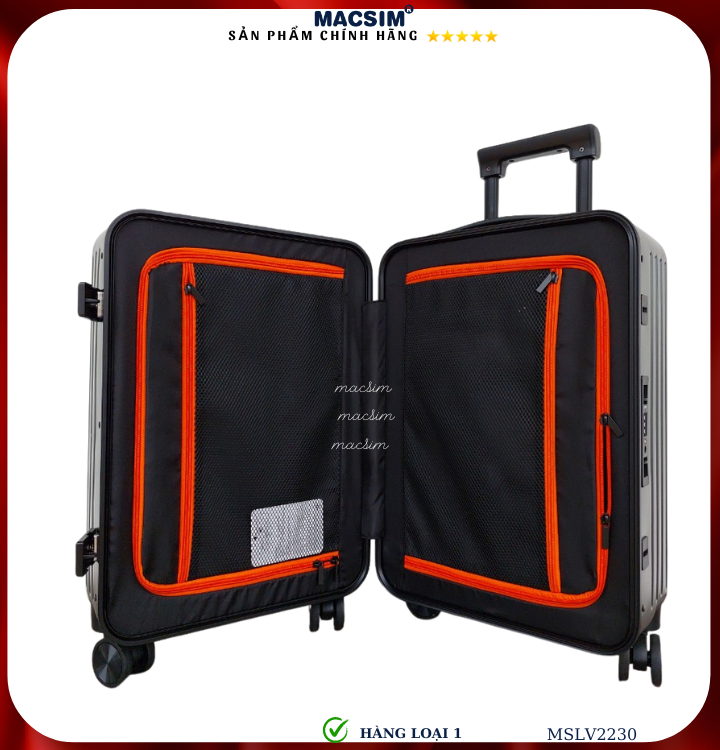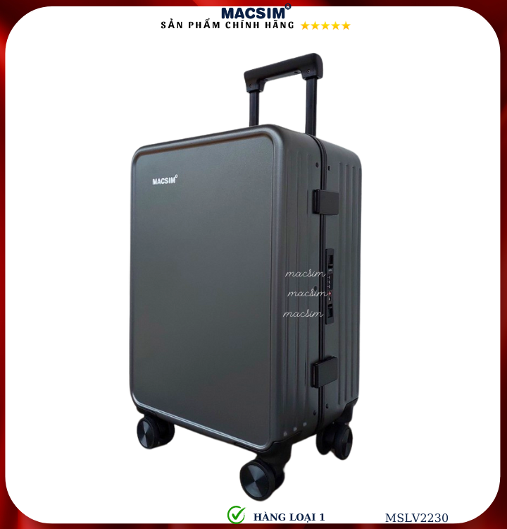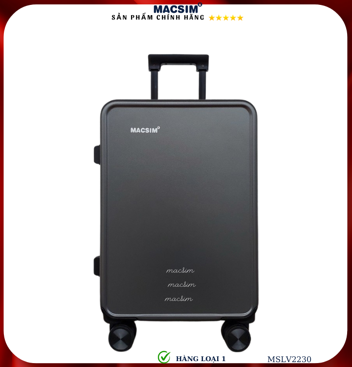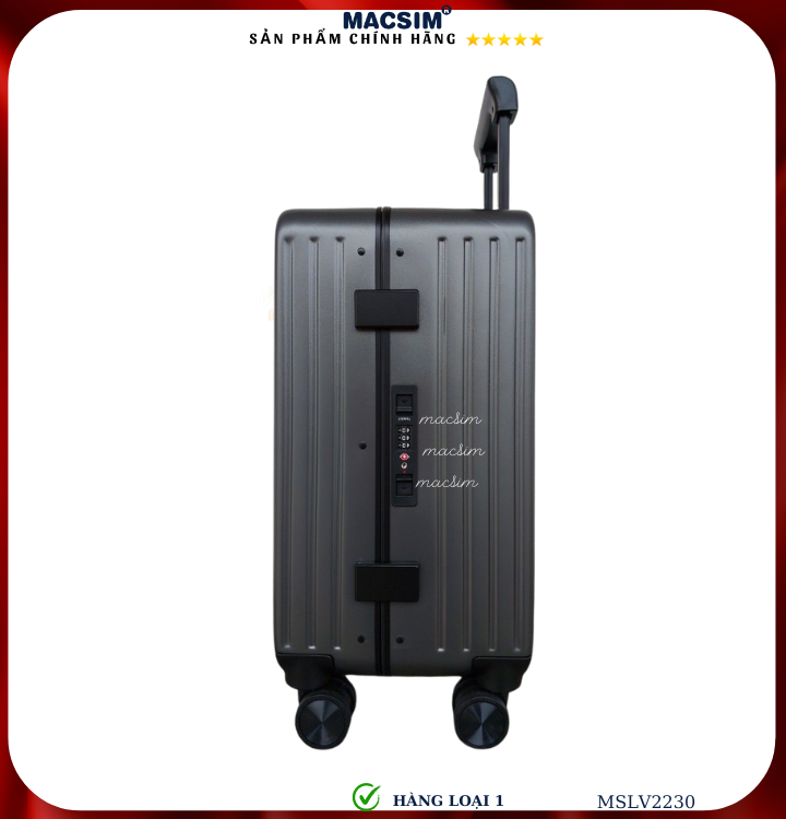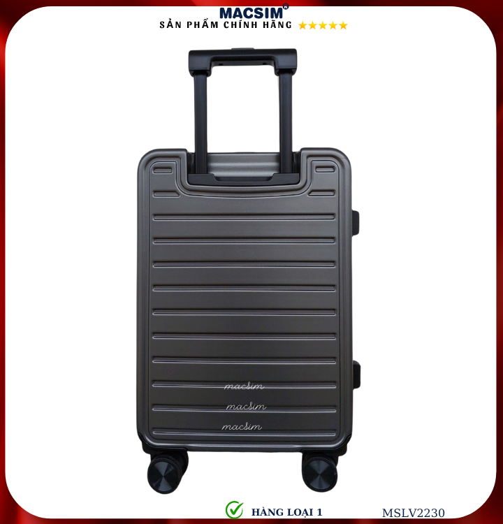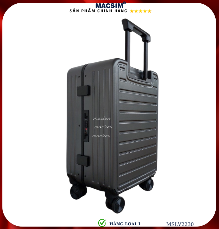Vali Macsim được làm từ chất liệu nhựa nguyên chất PC. Tấm lót bên trong Poliester 150D xuất xứ Trung Quốc được REACH kiểm nghiệm và phê duyệt, bánh xe 360 độ hãng SJ CỦA Mỹ ; Khóa kéo thương hiệu SBS xuất xứ Trung Quốc, Khóa TSA hãng Master Lock của Mỹ. Thiết kế vali đơn giản lịch lãm vô cùng sang trọng, bền bỉ, tạo dấu ấn phong cách thời trang cá nhân của bạn trên mọi cuộc hành trình. Vali cao cấp Macsim thích hợp với những người thường xuyên di chuyển cần chiếc vali nhẹ, có độ bền tốt.