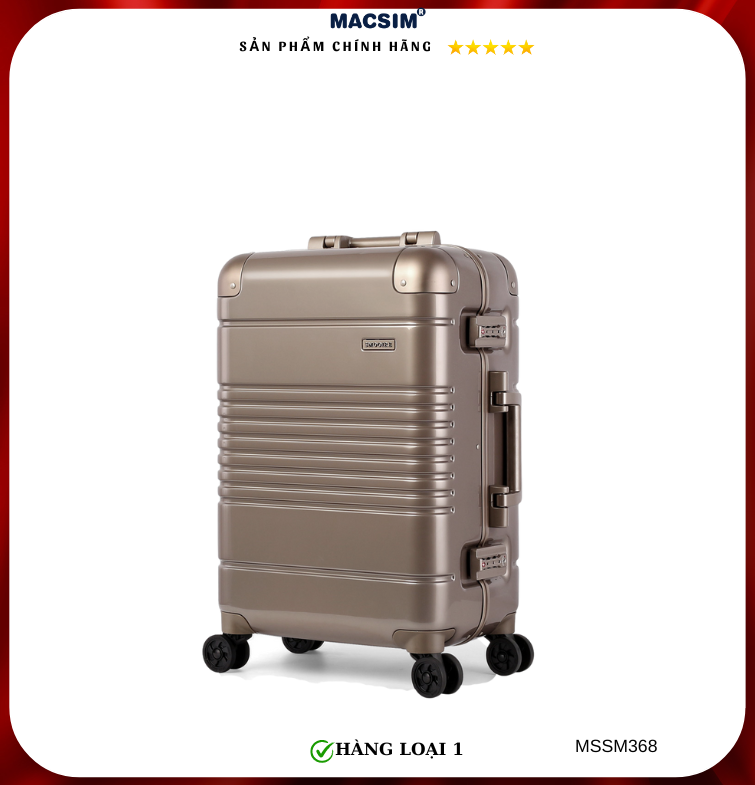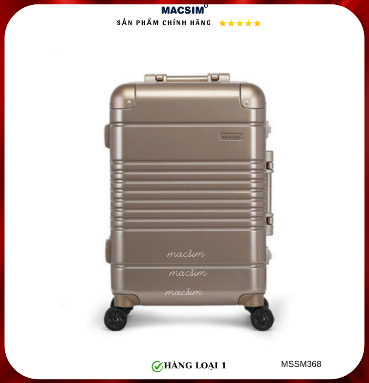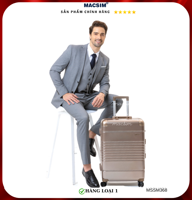 Vali Macsim được làm từ chất liệu nhựa nguyên chất PC. Tấm lót bên trong Poliester 150D xuất xứ Trung Quốc được REACH kiểm nghiệm và phê duyệt, bánh xe 360 độ hãng Hinomoto của Nhật ; Khóa kéo thương hiệu SBS xuất xứ Trung Quốc, Khóa TSA hãng Master Lock của Mỹ. Thiết kế vali đơn giản lịch lãm vô cùng sang trọng, bền bỉ, tạo dấu ấn phong cách thời trang cá nhân của bạn trên mọi cuộc hành trình. Vali cao cấp Macssim thích hợp với những người thường xuyên di chuyển cần chiếc vali nhẹ, có độ bền tốt.