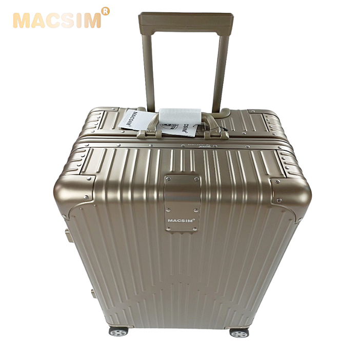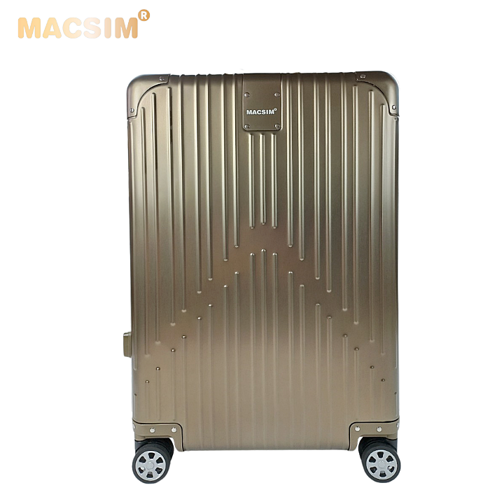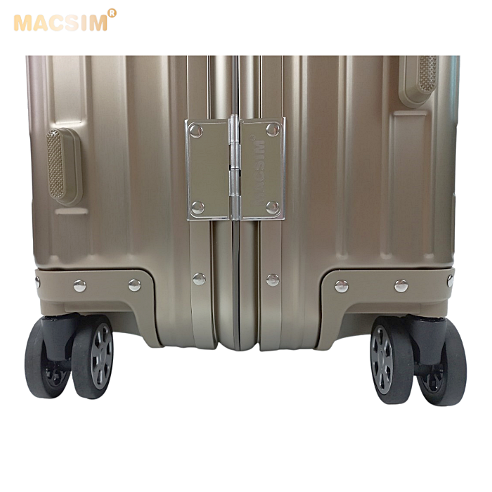 Toàn bộ thân vỏ vali Macsim làm bằng hợp kim nhôm A6063 làm cho vali rất nhẹ, độ đàn hồi cao, chống ăn mòn, chịu được tải trọng lớn.