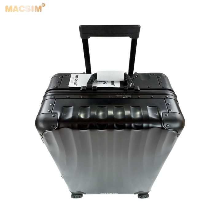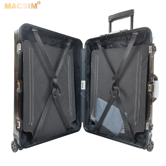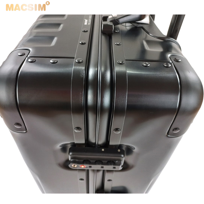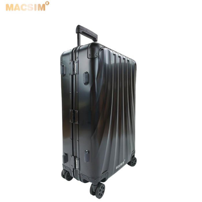 Toàn bộ thân vỏ vali Macsim làm bằng hợp kim nhôm A6063 làm cho vali rất nhẹ, độ đàn hồi cao, chống ăn mòn, chịu được tải trọng lớn.