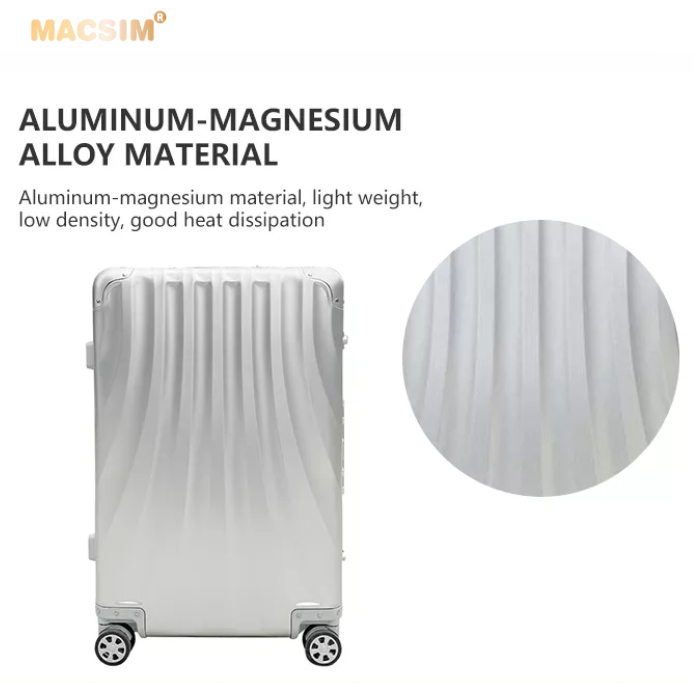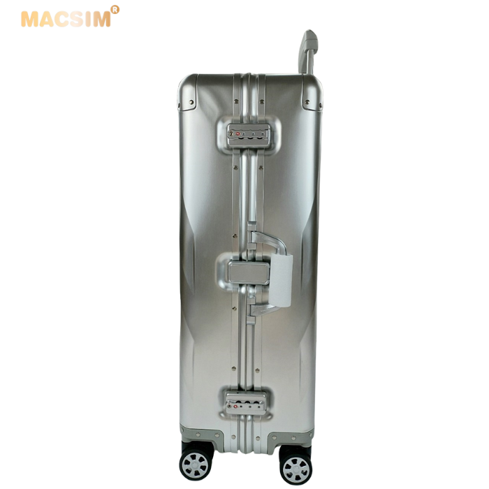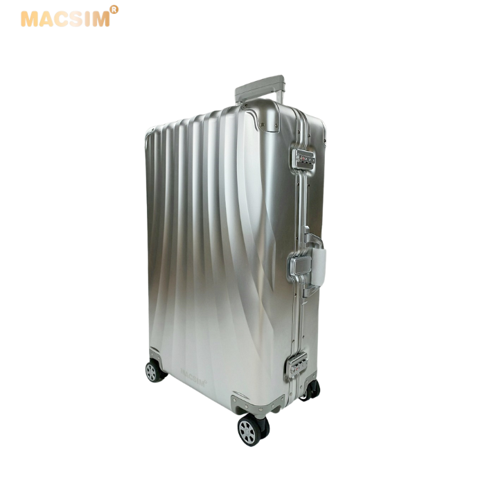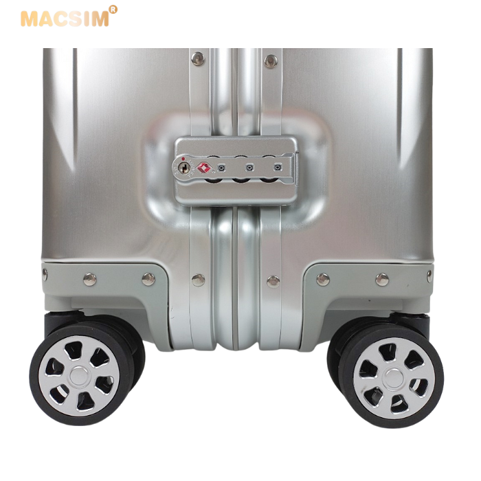 Toàn bộ thân vỏ vali Macsim làm bằng hợp kim nhôm A6063 làm cho vali rất nhẹ, độ đàn hồi cao, chống ăn mòn, chịu được tải trọng lớn.