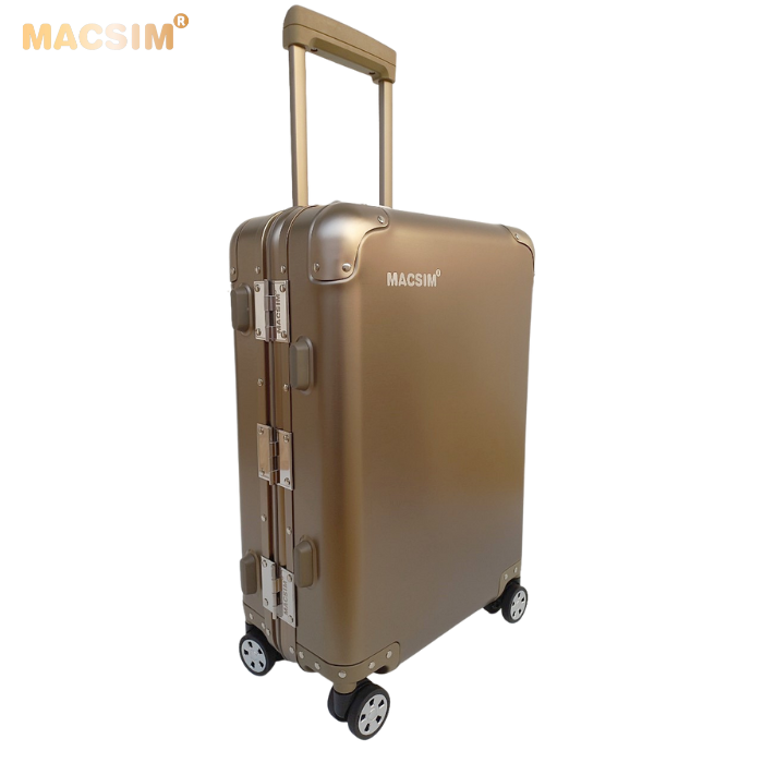 Vali du lịch cao cấp chất liệu hợp kim nhôm nguyên khối MS1318 Macsim cao cấp màu tigold cỡ 20inches